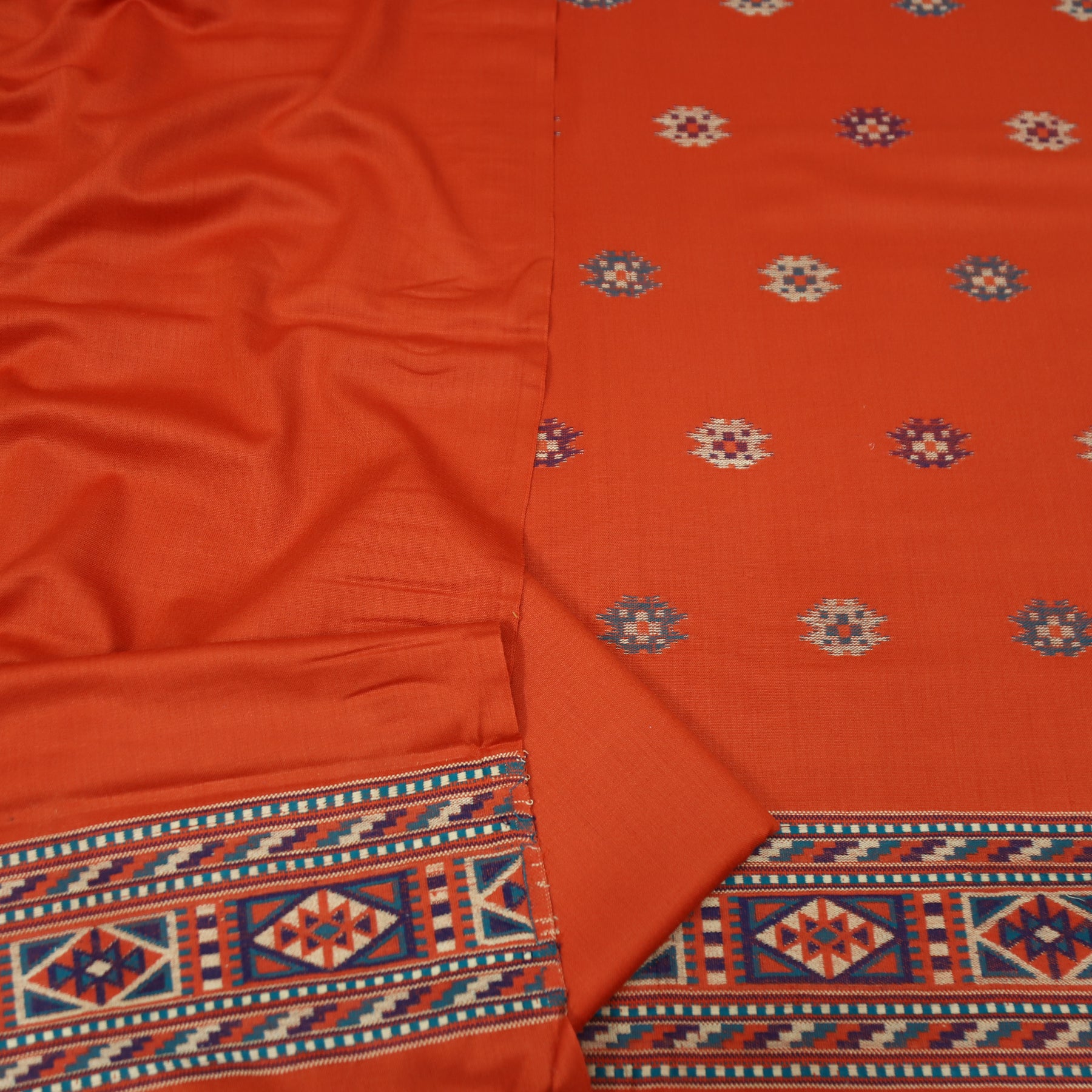 संजीवनी Rust Orange Defined by Thread Weaved Hem Semi Pashmina Winter Set