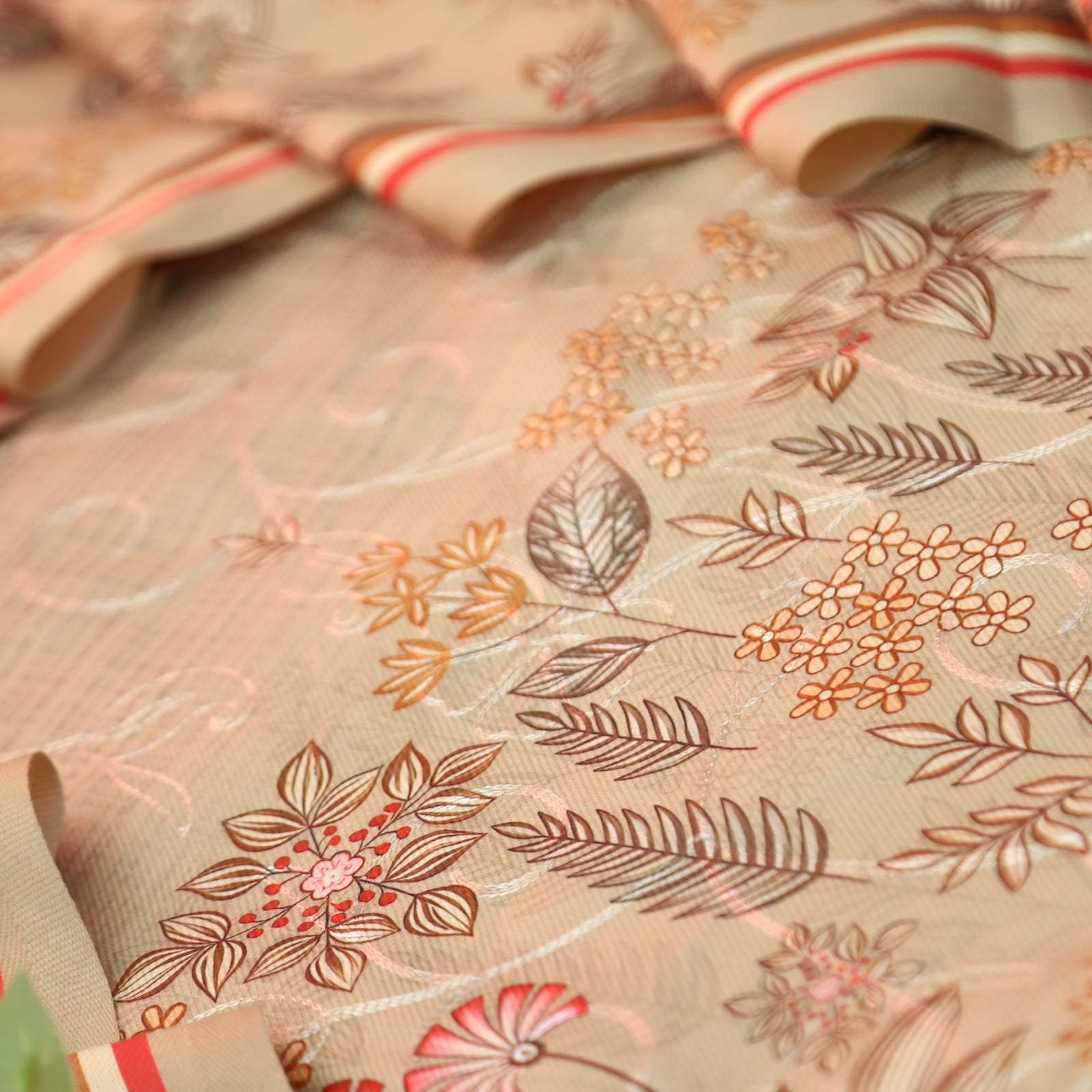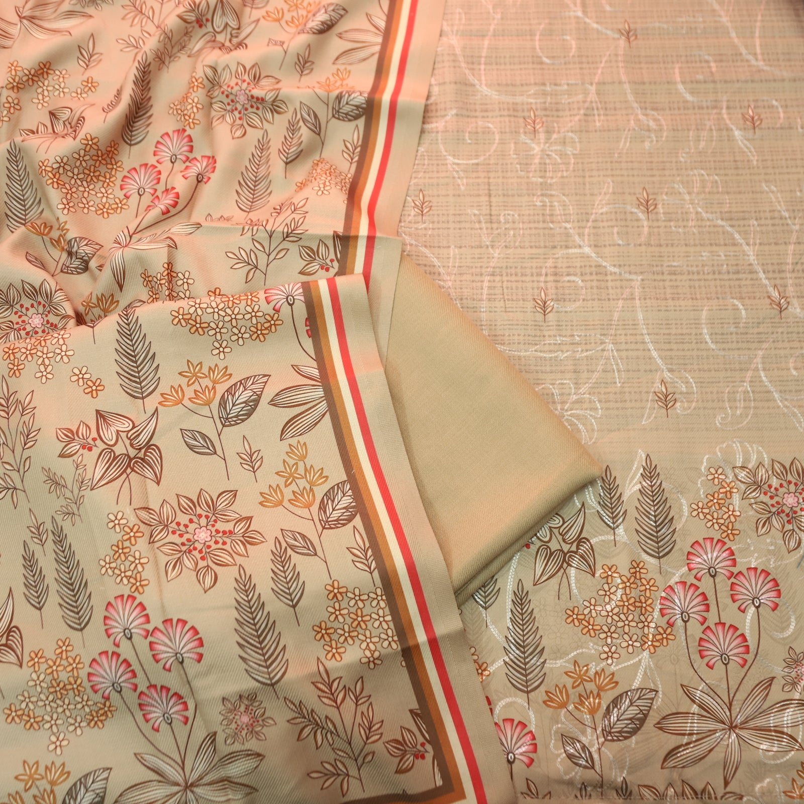 सायरा Blonde Beige Balanced By Floral Printed and Aari Work Semi Pashmina Winter Set