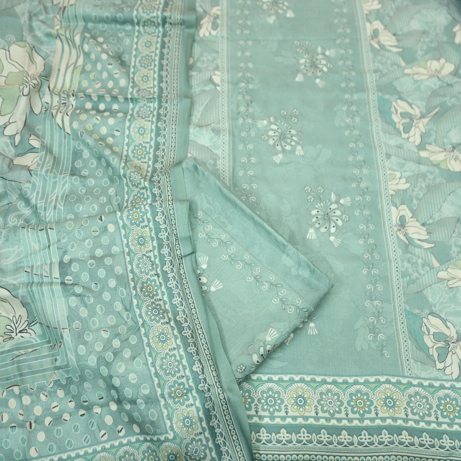 हरदीप Mint Sea Form Defined By Floral Printed Work Semi Pashmina Winter Set