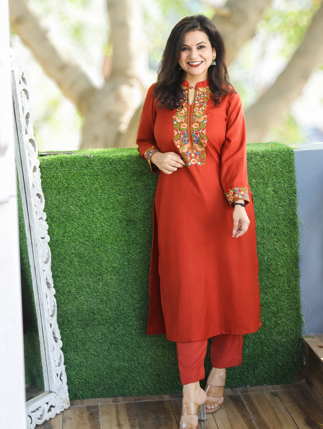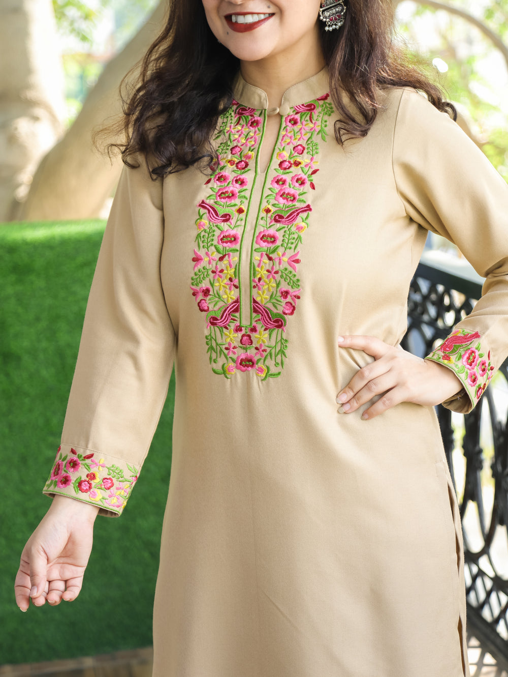 • Semi-Pashmina Kurtis: Our semi-pashmina kurtis are soft and provide excellent warmth. They are available in lovely shades like blue, white, yellow, and more. With detailed thread work on the neck, these will look perfect for casual outings or festive occasions.