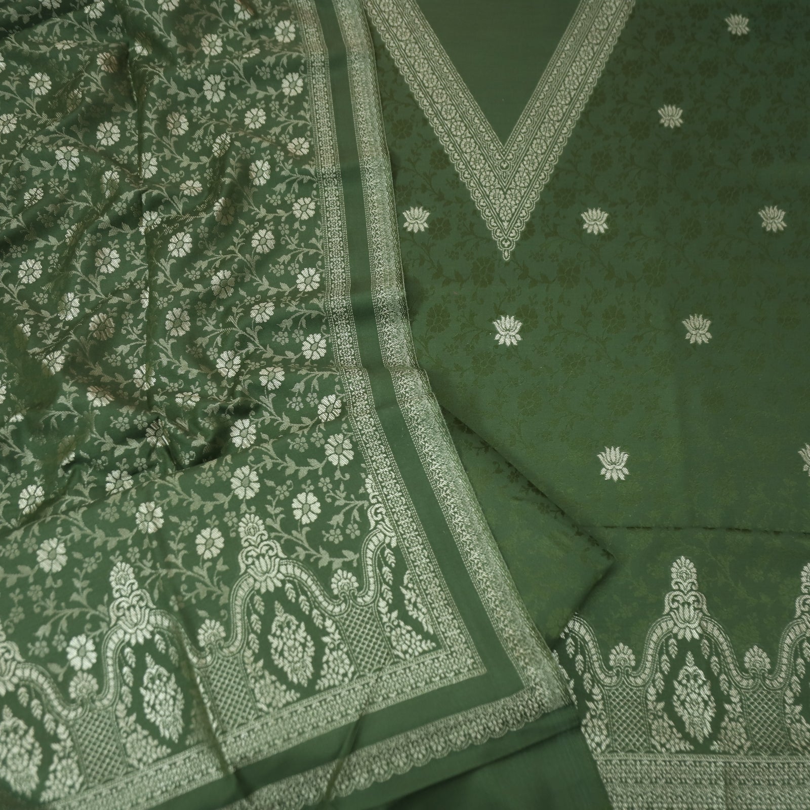 अनीत Sacramento Green All Over Zari Weaved in Semi Pashmina Winter Suit Set