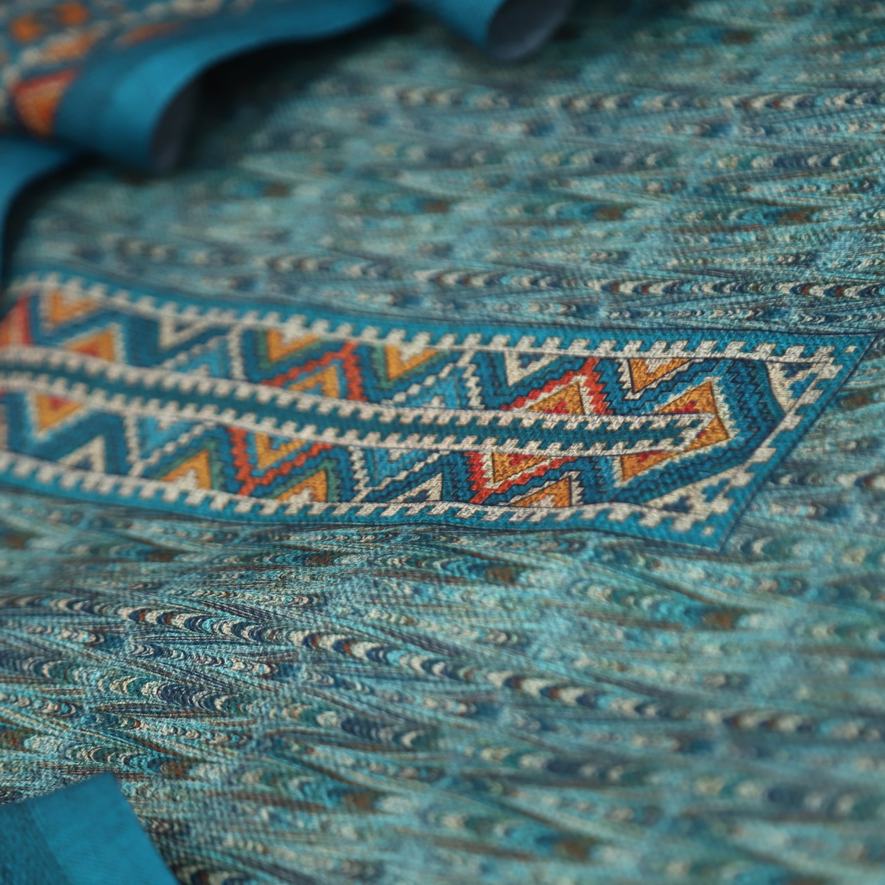 विशाखा Sapphire Blue All Over Intricate Digital Printed Semi Pashmina Winter Set