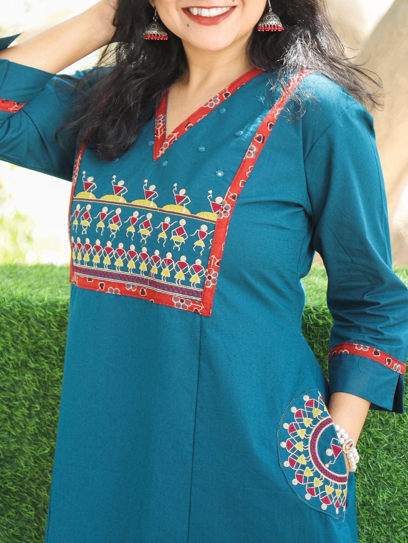 Neck: V Neck with Warli Embroidered Yoke