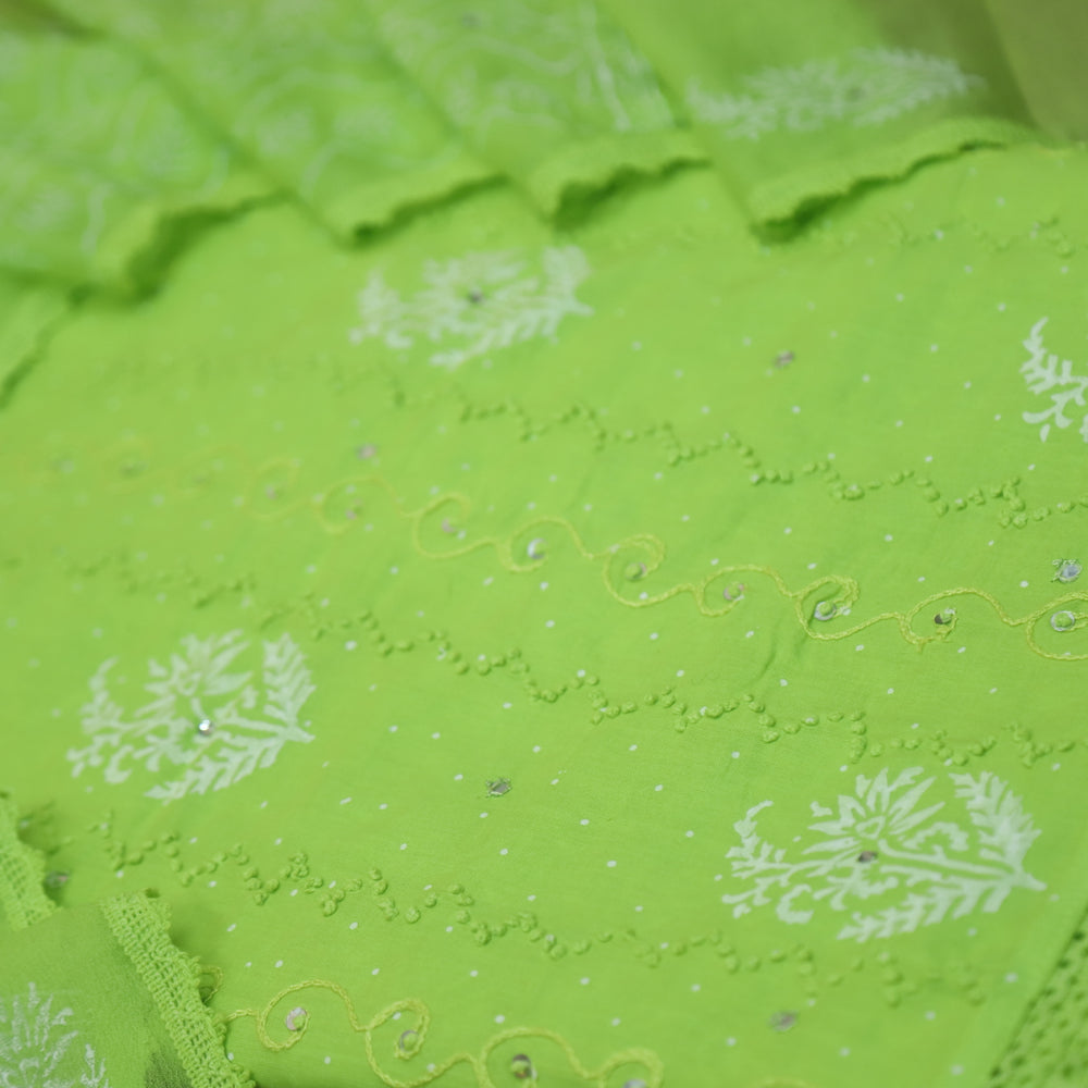 Ruaa Neon Green French Knot Work with Patra Detailing Cotton Suit Set