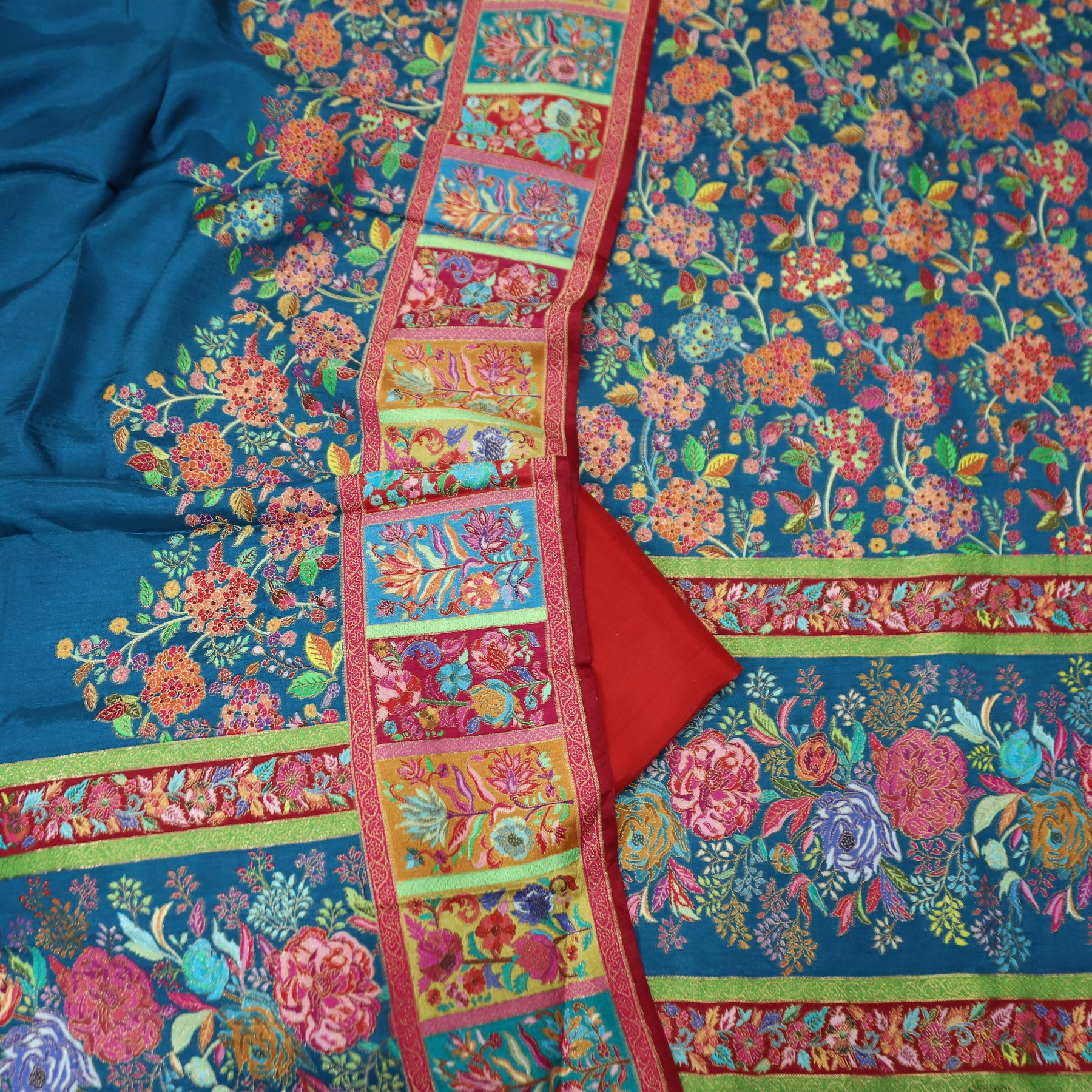 Saraayah Teal Luxe Pochampally Print in Pogishan Jacquard Weaved Gajji Silk Set